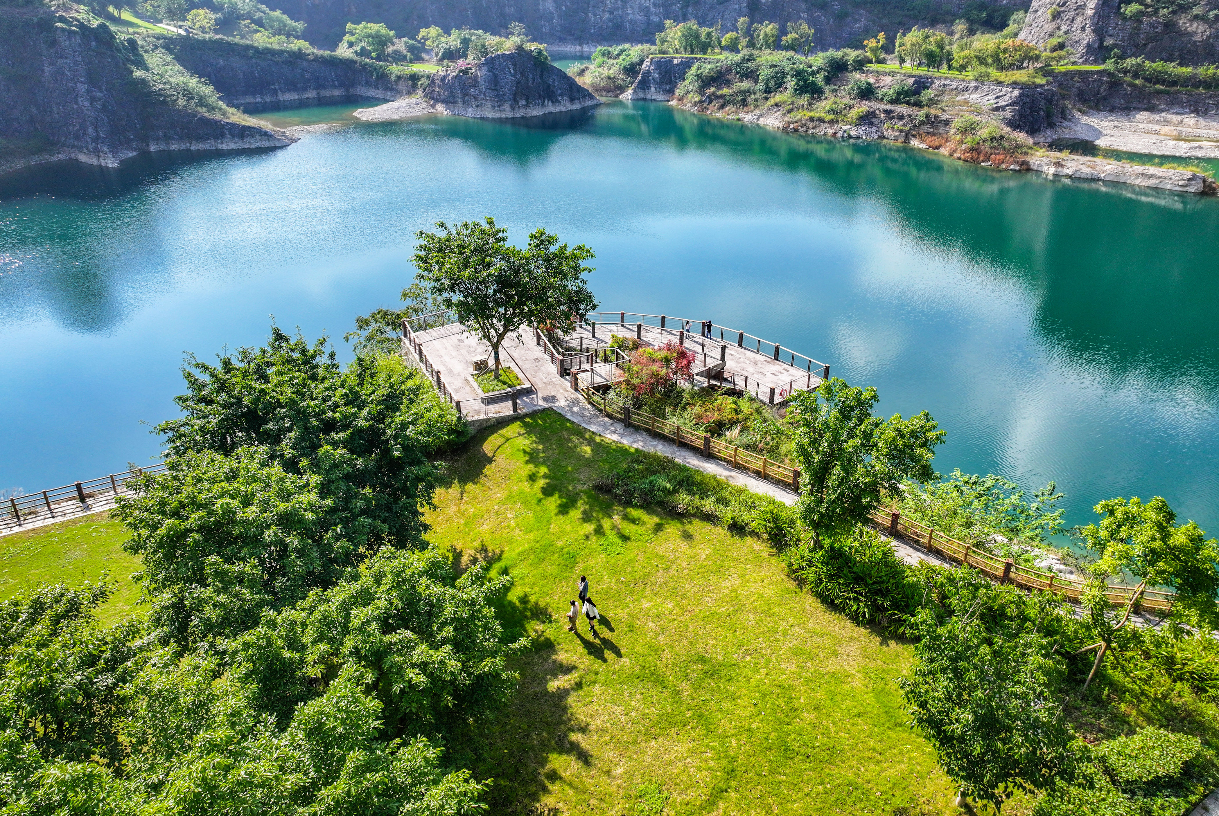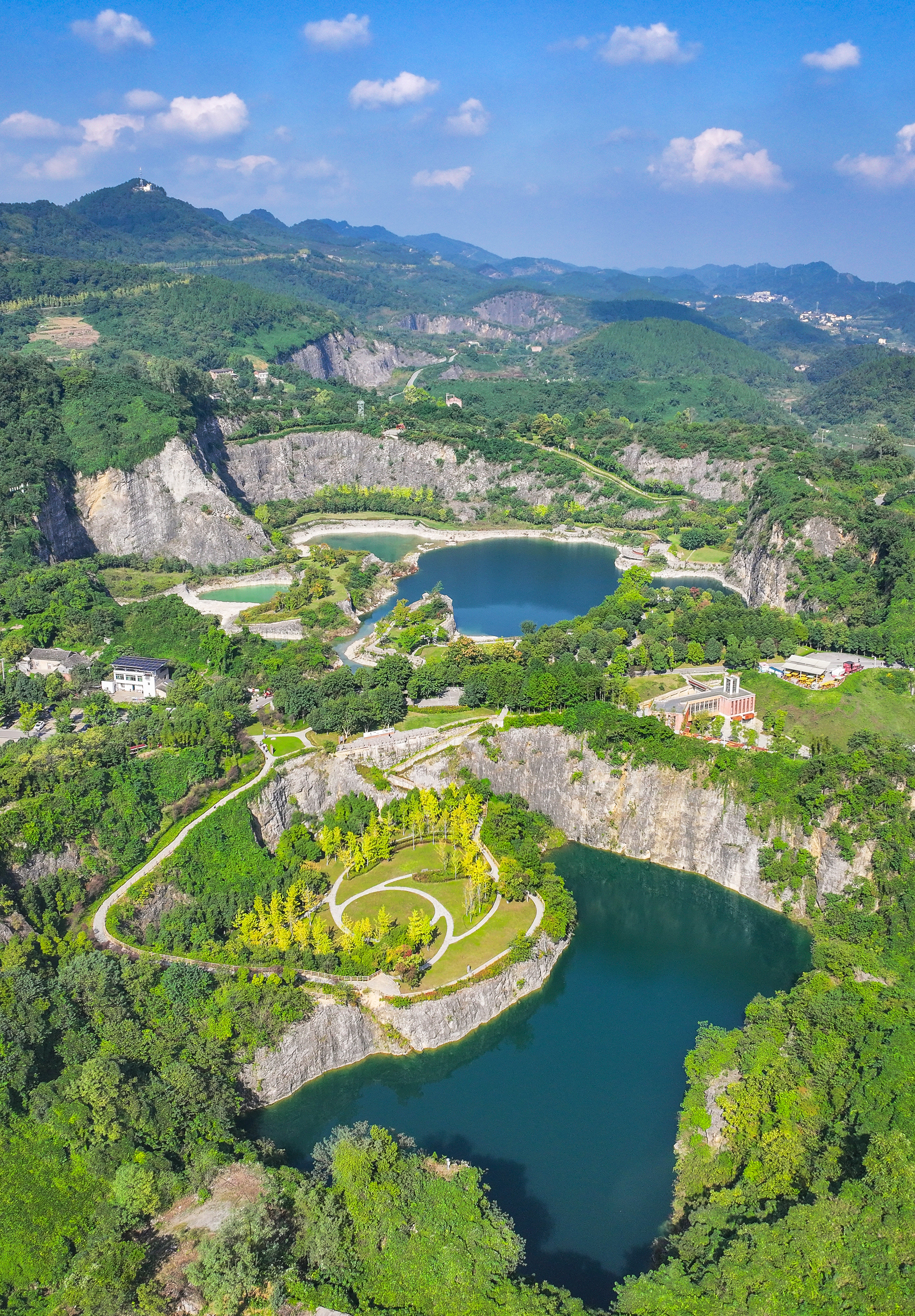 ▲10月28日,渝北区铜锣山矿山公园,矿坑碧水凝翠,恰似一颗镶嵌在山间的蓝宝石。首席记者 龙帆 摄
